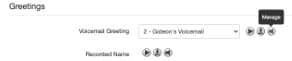 f. Options: You can receive an email when your mailbox is full or if you have missed a call. g. Voicemail Greeting: To add a new voicemail greeting from the VIP Portal: i. Select the “Manage” button.
