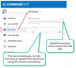 1. Within the Crexendo Web Phone, select “Voicemail” from the navigation pane.