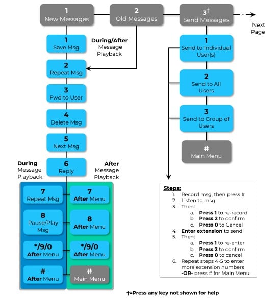 NOTE: This simply copies the voicemail to another user, but it does NOT mirror the actions that someone takes with that voicemail. If you delete the voicemail, it does NOT delete the voicemail in another user’s voicemail box.