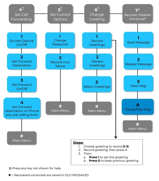 After you enter your PIN and hear your voicemail summary, the main menu is available to you as shown below: